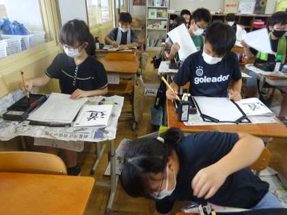 書写の授業で「道」という字を書きました。