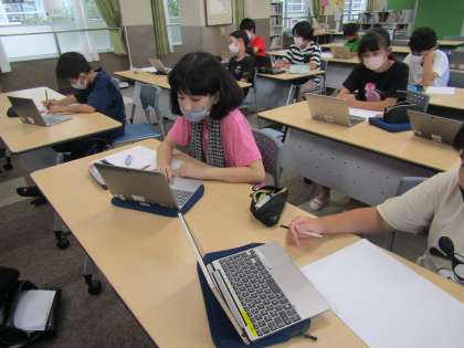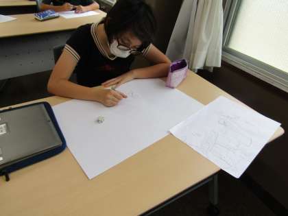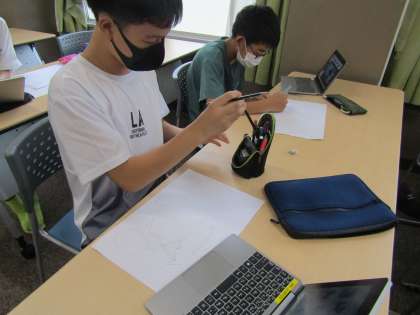 タブレットで、実物の画像を検索して、一生懸命かいていました。
