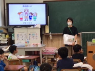 熱中症について養護の先生に指導をしていただきました。