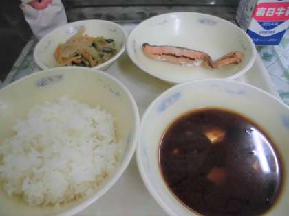 ごはん 牛乳 さけの塩こうじ焼き 小松菜と切干大根の煮びたし ​