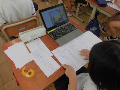 作っているパンフレットを嬉しそうに見つめて,楽しんでいました。