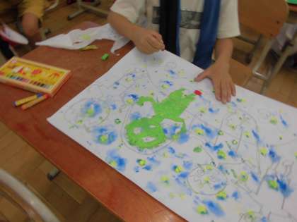 また,フチをとってから塗ったり,クレパスを2色混ぜたり,きれいに塗るためのいろんな工夫が見られました。みんな頑張っています♪