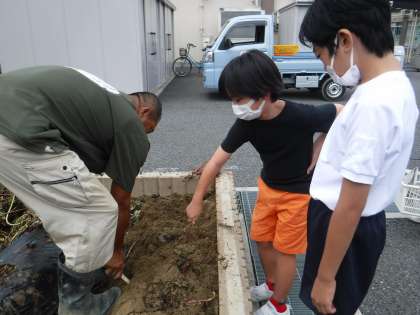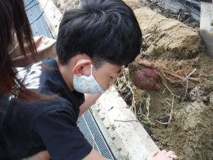 今日は、畑の先生にお世話になって大宮農園のサツマイモほりをしました。前日にいものつるを取ってぬきやすいようにしておきました。