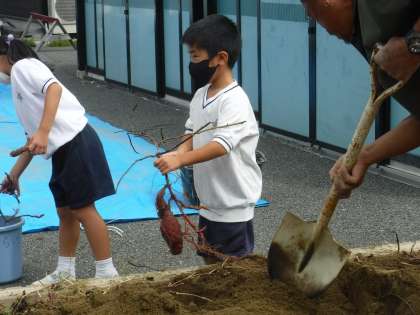 今日は、サツマイモを収穫しました。水やりを頑張ってきたのでみんな楽しみにぬきました!