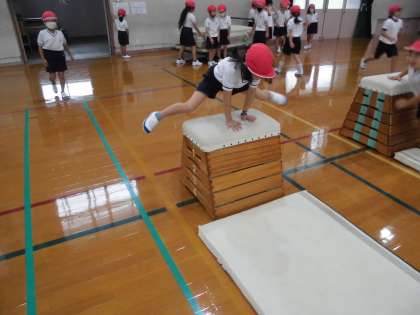 体育科「とびばこあそび」の学習の様子です。
