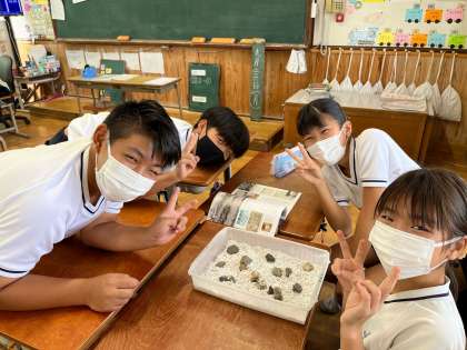 子どもたちは、15個の石をどのようにして並べるのかを、班の友だちと話し合いながら学習しました。
