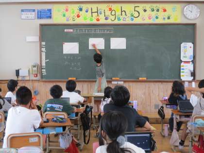 前に出て説明することができるようにという目標で前単元から取り組んでいます。