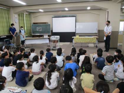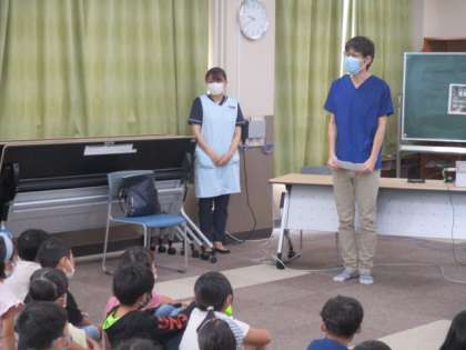 歯科衛生士さんがきてくださり、虫歯のお話や歯の磨き方についてお話してくださいました。