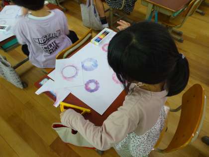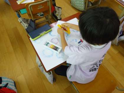 ていねいに指先をつかってアサガオの花びらを表現することができました。