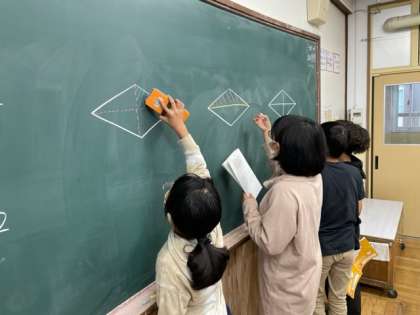 図形をつけ足したりして問題を解いています♪