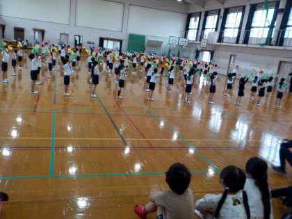 いよいよ明日スポーツフェスティバル本番です。前日の今日はあいにくのお天気でしたが、体育館で行った前日リハーサルを1年生が見に来てくれました。ダンスや隊形移動を1年生に褒めてもらえてとても嬉しそうでした。