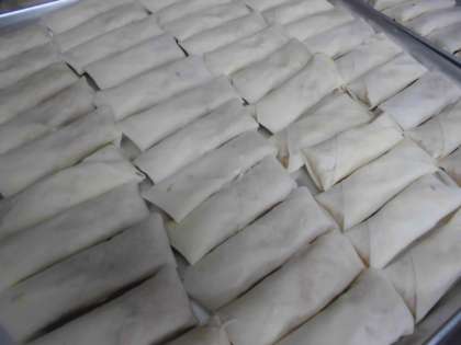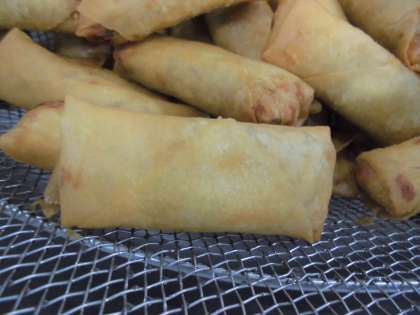 春巻は給食室でひとつずつ具をつつみ、揚げました。
