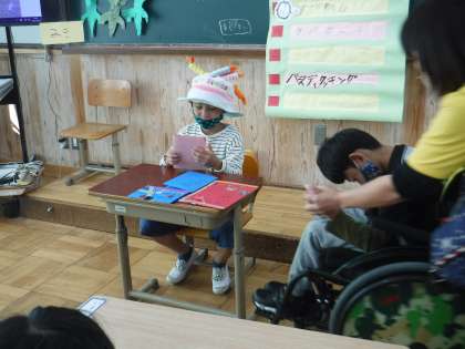 10月の誕生日会をしました!みんなでハッピーバースデーを歌いプレゼントのカードを渡しました。