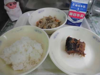 ごはん 牛乳 さばのしょうが煮 あいまぜ でした。