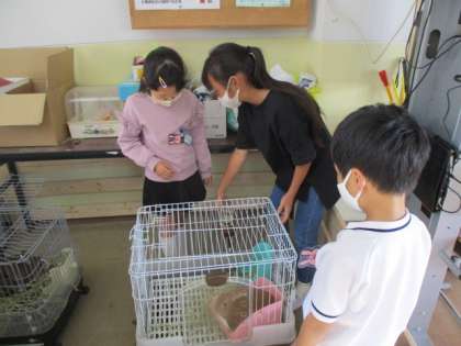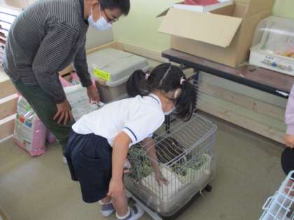 飼育委員さんに教えてもらいながら、お世話のお手伝いをさせてもらいました。
