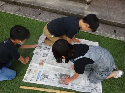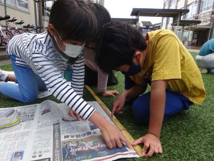 1平方メートルってどれくらい?と子どもたちに聞くと両手を伸ばして考えていました。実際に新聞紙で作ってみました。