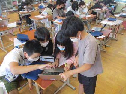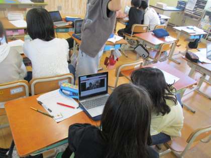 英語では自分や友達のことを紹介した動画をとなりの学校と交換しました。