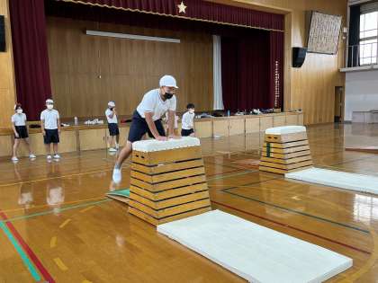 子どもたちは、高さや技などに挑戦しながら学習しています。
