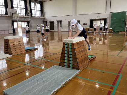 6年生の体育科の学習では、とびばこの学習をしています。