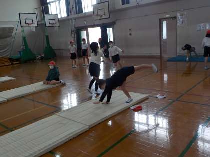 2年生の時のマット遊びとは違い技がどんどん難しくなってきましたね