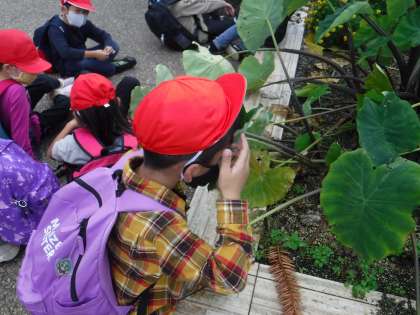今日は、植物園に遠足に行きました。みんなで歩いて行きました。秋を見つけながら歩きました。1年生みんなで出かけるのは初めてですが遅れることなく歩きました。