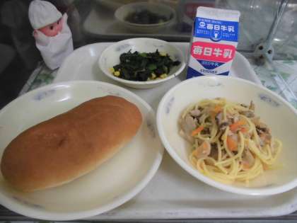 小型コッペパン きのこスパゲティ ほうれん草のソテー でした。