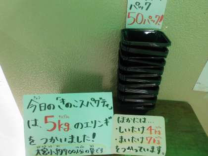 きのこスパゲティには、エリンギ・しいたけ・まいたけの3種類の