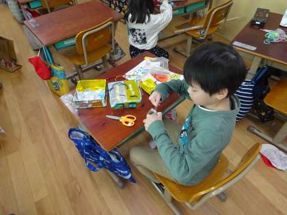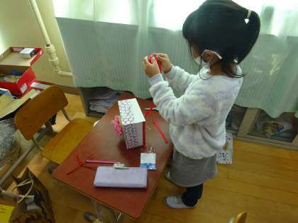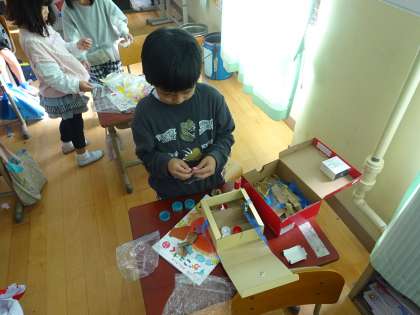 図工の「かざって なに入れよう」では、はこにいろいろな工夫ができました。