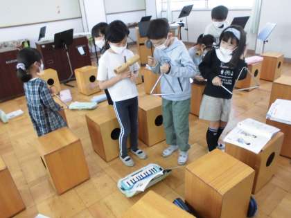 音楽科「いろいろながっきの音をさがそう」の様子です。