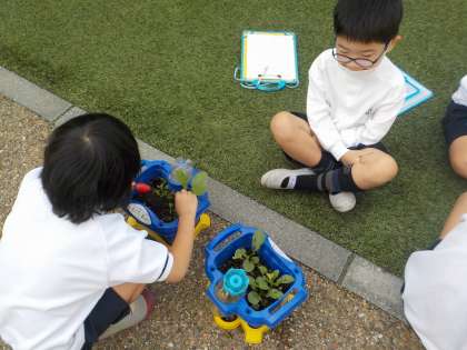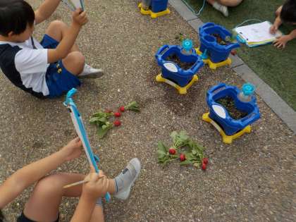生活科の学習で育てた二十日大根が大きくなりました。何人かは収穫した二十日大根を嬉しそうに見せてくれました。まだ、収穫するには小さい人もいます。収穫できる日が楽しみですね。