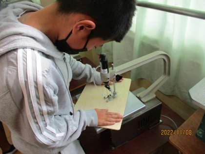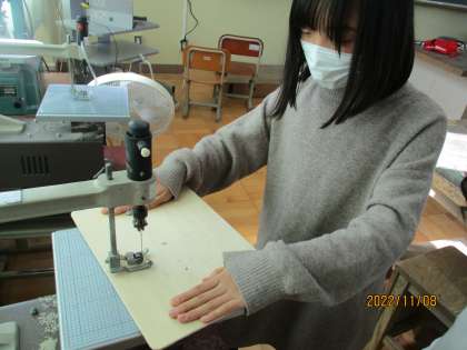 図工ではパズルをつくるために電動糸のこぎりに挑戦しました。