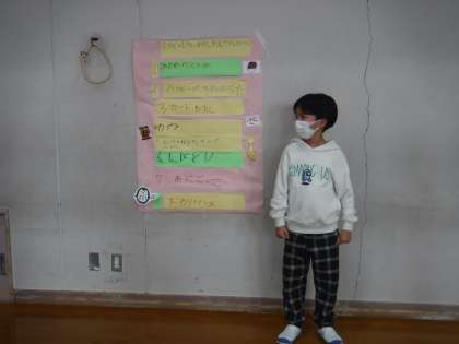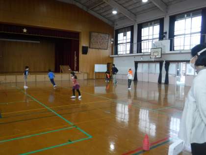 体育館でおにごっこやしっぽとりで盛り上がりました!終わりの言葉では「楽しかったです。みなさんありがとう!」とお礼を言いました。