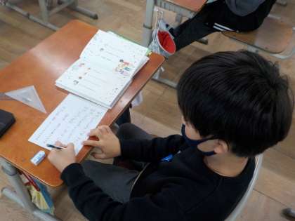 「わたしはおねえさん」のあらすじや読んだ感想をお花の形のカードに書いてまとめました。次回からはすみれちゃんシリーズのお話の中から、好きなお話を読んでカードを書いていきます。