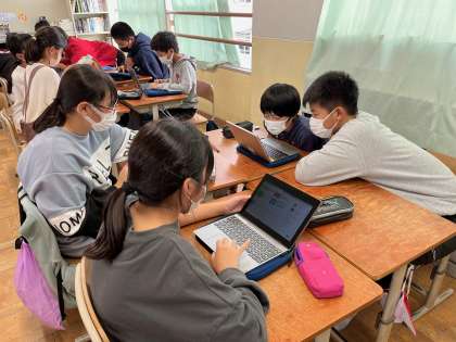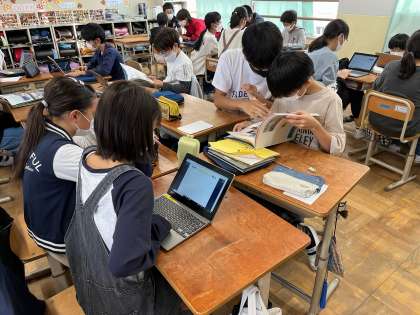 授業では、大宮校区の昔から今の様子について、インターネットや大宮の歴史について書かれた本を使って、班ごとに調べていきました。