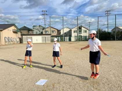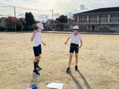 授業では、時間を決めて走る学習と、なわとびをしました。