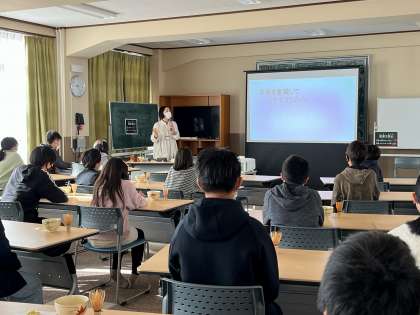 また授業では、茶道を体験するだけでなく、茶道の歴史や茶道で大切にされている考えについても、学習しました。