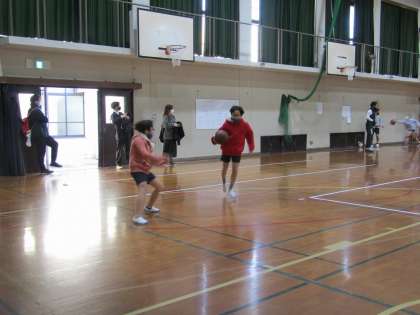 保健体育では、素早く動いて整列。そして、バスケットボールを楽しんでいました。