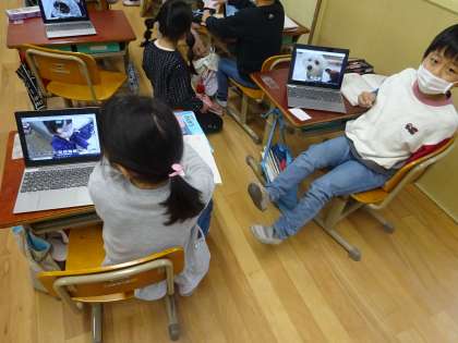 ともだちのことしらせようの単元では、友達がお気に入りのものをタブレットで撮影してきたものを見て質問を考えました。