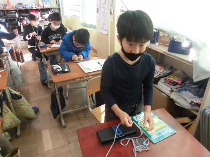 冬の季語の一つである「毛糸編む」を実際に体験した子どもたち。