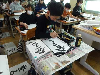 書写で「登る」という字を書きました。