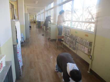 普段から子どもたちも掃除を頑張っていますが、窓ガラスをはじめ高いところや頑固な汚れは大人の方の力が大変ありがたいです。1時間程度でしたが、雑巾やモップは真っ黒になるほど集中して取り組んでいただき、ピカピカになりました。ありがとうございました。