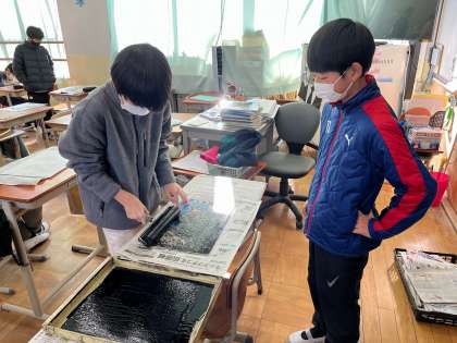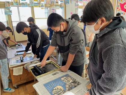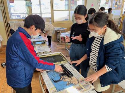 図画工作科「版画」の学習の様子です。