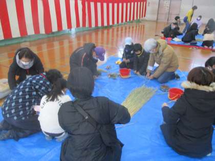 子どもたちには、なわない教室をしていただき、しめ縄づくりに挑戦。
