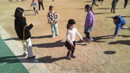 体育で学習したなわとびを休み時間にさっそく取り組んでいました。