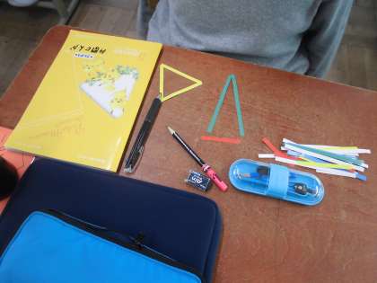 コンパスで二等辺三角形や正三角形をかく練習もしました!!