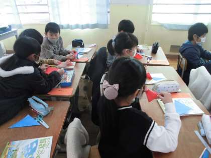 今日は,折り紙を使って二等辺三角形と正三角形を作りました。