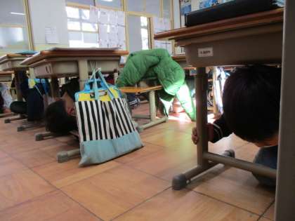 訓練では、緊張感をもって、放送があるとすばやく行動することができました。