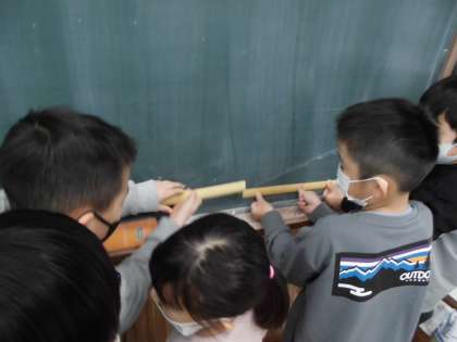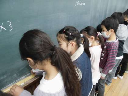 黒板の長さを皆で予想して、測りました。