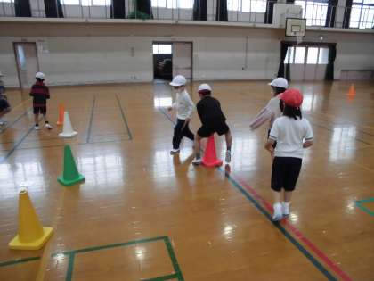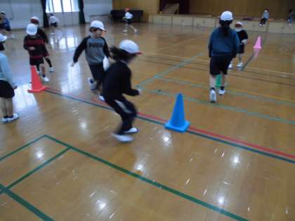 体育科「ゆっくりかけあし」の学習の様子です。