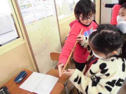 算数科「100cmをこえる長さ」の学習の様子です。